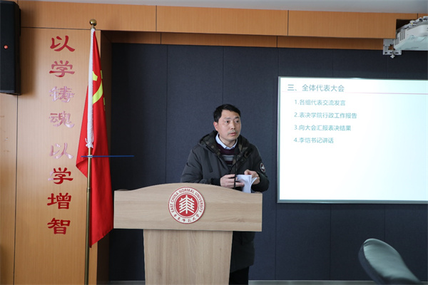 党委书记李恺作总结讲话,李恺表示,2024年是学院改革发展进程中的关键一年。全院教职工聚焦“强国建设、高校何为”“教育强国、我们何为”的时代命题,深入学习贯彻党的二十届三中全会精神与全国教育大会精神,锚定卓越航标,汇聚改革合力,助推教育、科技、人才事业协同发展,成果丰硕,希望各位代表积极传达会议精神,带动全体教职工将会议各项决策转化为实际行动。李恺指出,2025年,新一轮学科评估、“十五五”规划编制工作即将启动,希望全院教职工秉持初心、携手奋进,为实现学院、学科高质量发展贡献力量。
