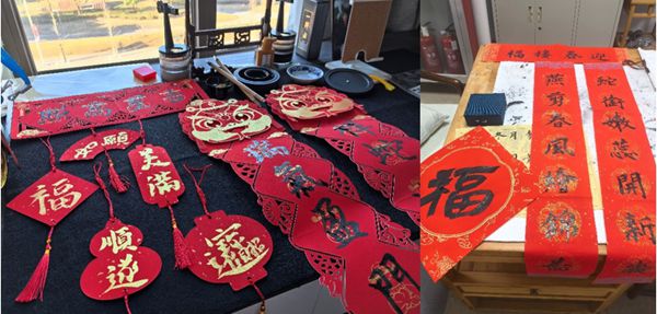 每逢春节,家家户户都要精选一副大红春联贴于门上,为节日增加喜庆气氛,学院教师泼墨挥毫写春联、写福字。“金蛇舞动”“瑞气盈门”,一声声美好的祝愿跃然纸上。