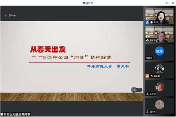 3月23日下午,伟德体育官网在线上召开3月份学院(含精密光谱国重实验室)教职工大会。大会特邀全国政协委员、我校历史系章义和教授作《从春天出发——2022年全国“两会”精神解读》报告。学院领导班子通报了近期重点工作。会议由学院党委书记李恺主持。学院(含精密光谱国重实验室)约290位教职工线上参会。