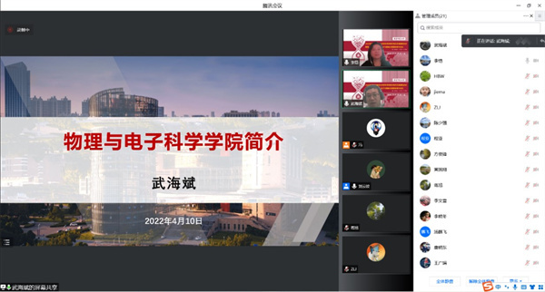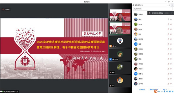 4月10日,华东师范大学第三届前沿物理、电子与精密光谱国际青年科学家(学者)论坛通过腾讯会议线上举行,来自美国、德国、瑞士、荷兰、日本等国家的12名青年学者参会。论坛由伟德体育官网党委书记李恺主持。