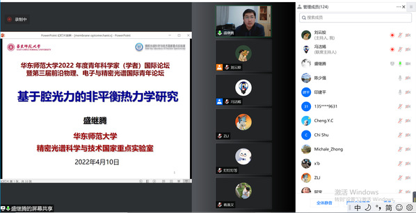 学院院长、精密光谱科学与技术国家重点实验室主任程亚对相聚云端的与会学者表示热烈欢迎。同时表示,青年是科技创新的未来,学院将为广大潜心钻研的青年学者打造自由宽松的科研环境,期待通过青年论坛广开进贤之路、广纳天下英才,携手海内外优秀人才,共创美好未来!