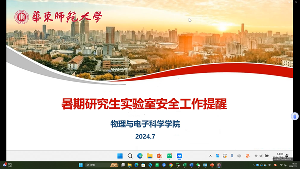 7月8日下午,学院在闵行校区物理楼对暑期留校学生开展了实验室安全线上培训活动,培训主要面向暑期需要进入实验室开展科研活动的学生,280名学生在线参加。培训由学院党委副书记栗蕊蕊主持,学院安全联络员翟宗德主讲。