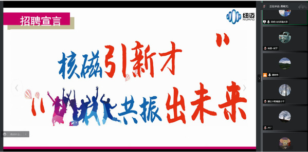 苏州纽迈分析仪器股份有限公司专注于提供高端专业的低场核磁共振技术产品及应用推广一体化解决方案,产品广泛应用于农业、食品、能源、岩土、新材料、纺织工业、生命科学等众多领域。产品总监高杨文表示,公司自成立以来勇于创新,目前身处行业高端,立足技术前沿,致力于打造“低场核磁共振科学分析仪器”行业第一品牌。人事总监伏锡军详细介绍了企业文化、团队风采和薪酬福利情况,愿有识之士加盟同行,共振未来!