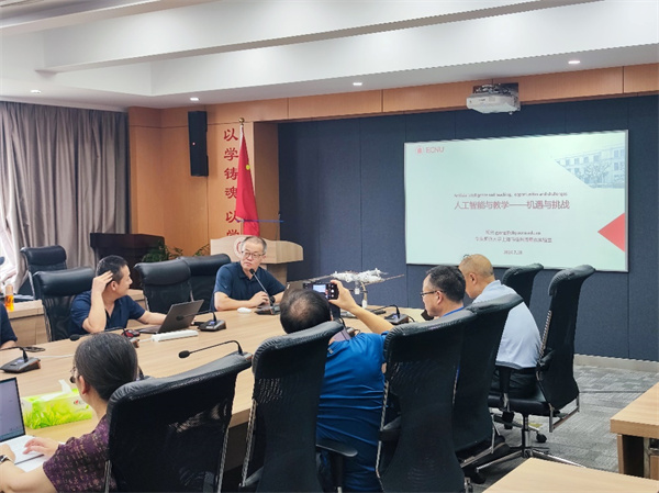 为帮助教师更好地理解人工智能技术对教育生态、教学模式的影响,更有效地引导学生利用AI工具赋能学习,7月11日下午,我院在闵行校区物理楼三楼多功能厅召开“AI赋能教师教学创新研讨会”。上海市磁共振重点实验室副主任杨光、精密光谱科学与技术国家重点实验室教授袁翔分别做题为“人工智能教学的机遇和挑战”和“固体物理与AI融合教学创新探索前沿科技在教育中的应用”主题报告,20余位教师参与研讨,会议由副院长徐敏主持。