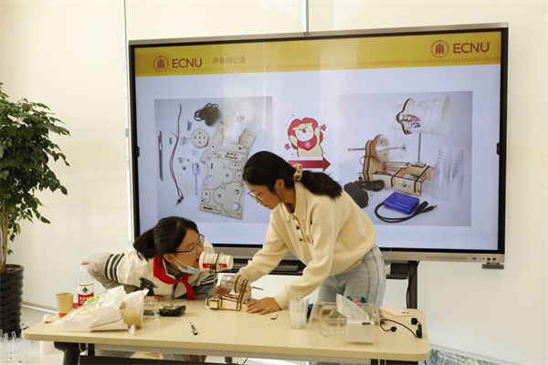 青少年组的小朋友则在互动实验中学习了声音的产生、传播、接受,光的偏振与表面张力等知识。“声音捕手”将声音可视化,让同学们“看见”声音的产生、传播、接收和录制的原理;透过“彩色的糖水”,同学们学习到光的偏振特性和糖水的旋光性; “漂浮的回形针”模拟了会“水上漂”功夫的水黾。
