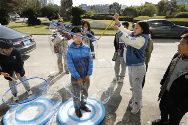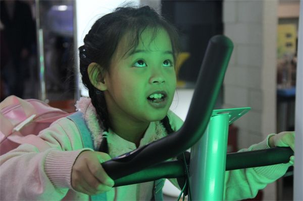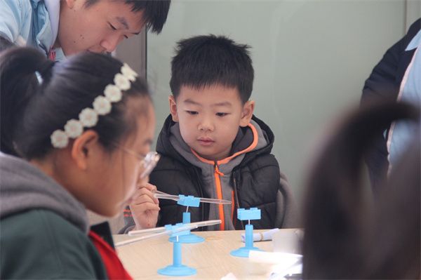 在实验A楼物理科普实验室,全息摄影、磁悬浮演示以及机翼空气动力学演示等装置,如同魔法般吸引着孩子们的目光。他们还体验了重心、振动与波、电势能、静电、自行车发电等实验设备。互动式的体验,不仅让物理知识变得生动有趣,也让孩子们领悟到了科学的奥妙之处。