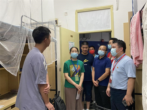 早上7点左右,所有迎新志愿者准时到岗,精心准备。副校长顾红亮、教务处副处长周先荣、后勤保障部副部长江铁锋一行到学院指导开学工作。