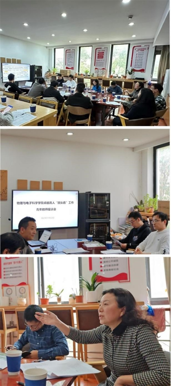 11月22日下午,学院卓越育人“回头看”青年教师座谈会暨迎新交流会在闵行物理楼227会议室召开。学院党委书记李恺、青年教师联谊会会长李燕和近两年新入职教师代表参加活动。