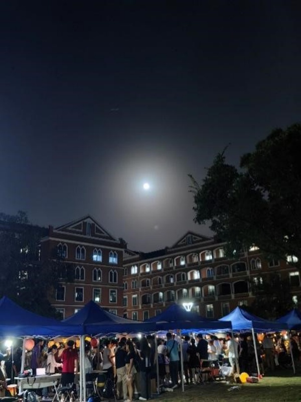 夜幕降临,同学们齐聚上海交通大学光启天文台开展赏月活动,共同迎接中秋皎月的升起。
