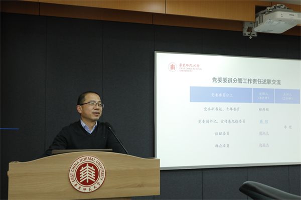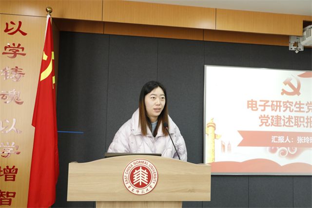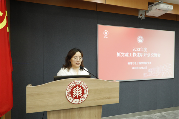 随后,精密光谱科学与技术国家重点实验室党总支书记郑利娟、精密光谱科学与技术国家重点实验室教工第二党支部书记齐大龙、物理学系教工党支部书记杨洋、磁共振实验室教工党支部书记王雪璐、精密光谱科学与技术国家重点实验室研究生第一党支部书记闻齐、精密光谱科学与技术国家重点实验室研究生第六党支部朱琦琦、理论物理研究生党支部书记陆正强、电子研究生党支部书记张玲玲分别作为师生党支部书记代表进行述职,学院党委委员逐一点评。