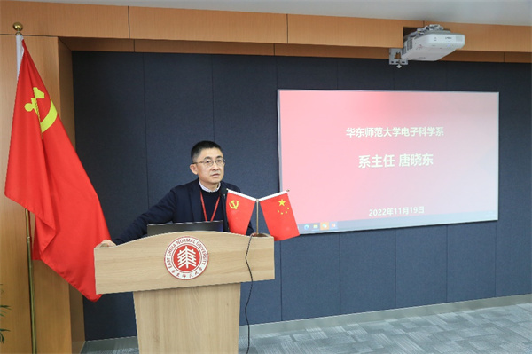 电子科学系系主任唐晓东对系里近期各项工作进行了总结和通报,并说明电子科学系举办卓越人才发展交流会的目的和初衷。他希望青年教师加强系内科研合作与交流,立足重点研究基地,面向国家重大需求和科技前沿,努力拼搏。