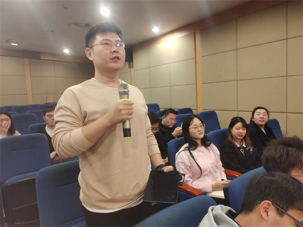 自由讨论环节,在场师生分别从主题报告、专业学习、考研招生等方面进行热烈讨论。张腾蛟表示,欢迎更多的同学到微系统所科研基地进行参观见习,也期待深化和学院在人才培养方面合作。