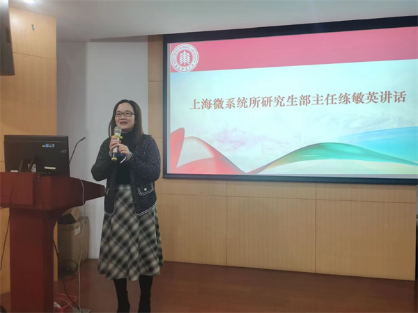 练敏英对中科院上海微系统所的历史沿革、科研条件、科研成就、文化传统作详细介绍。她希望“上海微系统所奖学金”能够更好地支持同学们完成学业,也欢迎我院学子多多关注微系统所。
