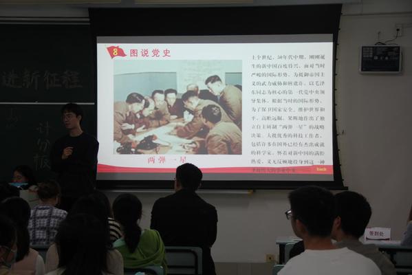 图说党史环节中,选手们开动脑筋,通过对图片的仔细辨认,回忆历史事件,并对事件的意义进行阐述。各位评委对每组同学的发言都进行点评,并抓住事件重点,为同学们讲解了各个重要历史事件的深远影响。