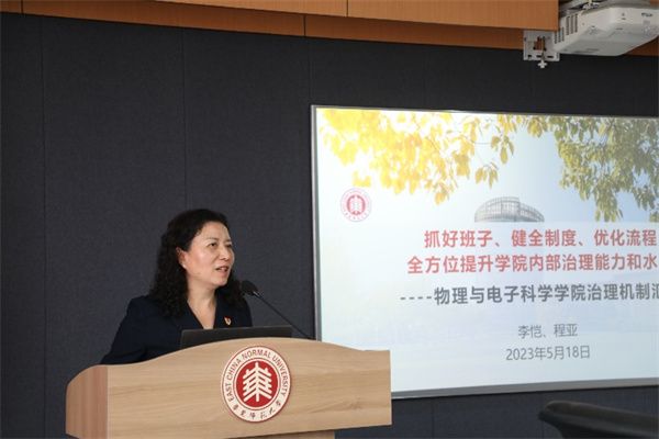 学院党委书记李恺以“抓好班子、健全制度、优化流程,全方位提升学院内部治理能力和水平”为题,从总体概况、治理体系、取得成效、存在问题四个方面介绍了学院组织构架、管理队伍、议事机构、议事制度和议事流程等基本情况。李恺表示,在校党委的坚强领导和关心支持下,学院近年来在卓越科研、卓越育人和卓越管理方面取得了一定成效。但在系统化理论学习、标志性党建成果凝练、国际化合作交流等方面仍存在一些问题,未来,学院将加强战略谋划,多渠道、多层次抓好人才队伍建设,促进重大科研成果产出,探索构建卓越管理体系,全力推进卓越育人和卓越科研工作。