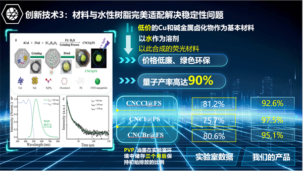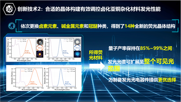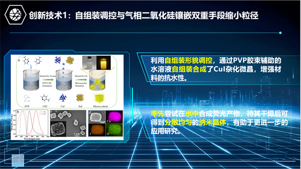 针对上述问题,团队成员研发出印刷式多波段复式响应荧光防伪图案,通过配方调制,采用丝网印刷工艺,可以制备出多波段响应的荧光防伪图案。该图案在不同波段激发光的照射下,能够产生不同的荧光,其发光效果随意可调,从而提高了图案的防伪能力。此外,该材料还在太阳能电池光转换、LED光转化方面具有潜在的用途,具有广阔的应用前景。