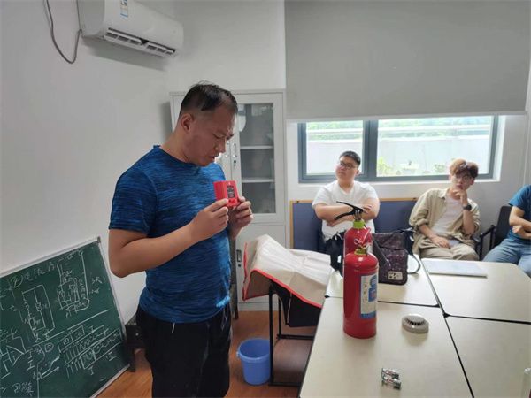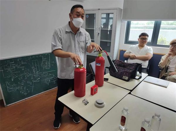 吴俊首先介绍了常用灭火器的分类、额定容量和常见火灾的分类,对不同类型灭火器适用的火灾类型、灭火器的操作方法和步骤、如何判定灭火器是否在有效期等进行重点讲解,此外,对灭火毯、火情应急报警器、房间烟感和消防喷淋等装置的使用方法、工作原理等进行介绍。
